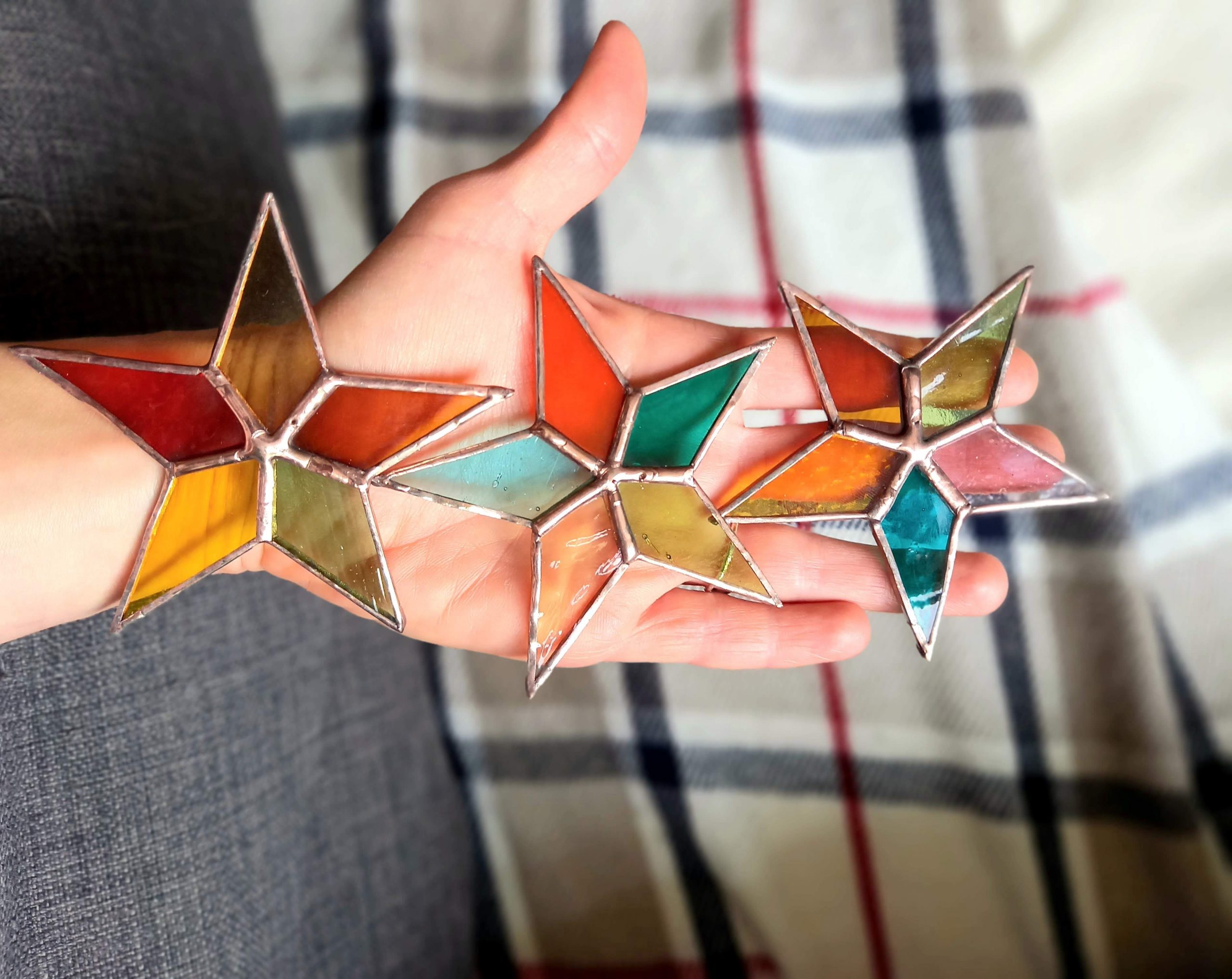 There is something about stars that makes them a special and unique gift. You can buy them all year round as birthday gifts but I think that glass star as a Christmas decoration is more than ideal. These are a bit smaller than those I made originally but as well a bit cheaper. They look great in a window but as well fit on Christmas tree or in a stocking so its a win win. Colours do vary and I urge customers to contact me before they purchase or just talk to me about palette colours they prefer, however Christmas is a busy time and I might have those in a limited colour versions.