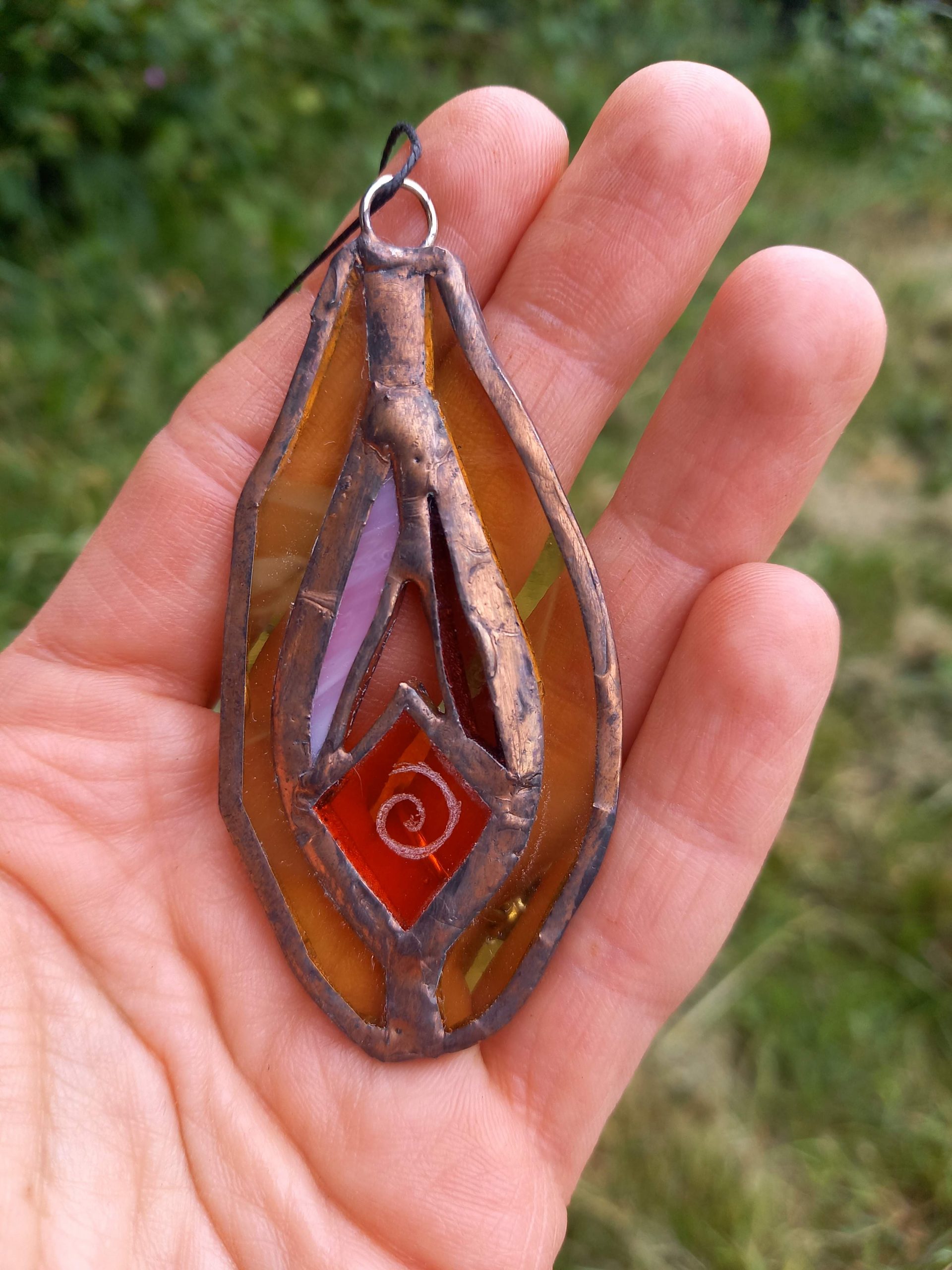 Once again, Tiffany technique with copper foil and glass would come in different colours, depending on the yonis mood and my mood I guess! Please have a look at the products gallery and feel free to send me a message regarding the shape and colour you like most.